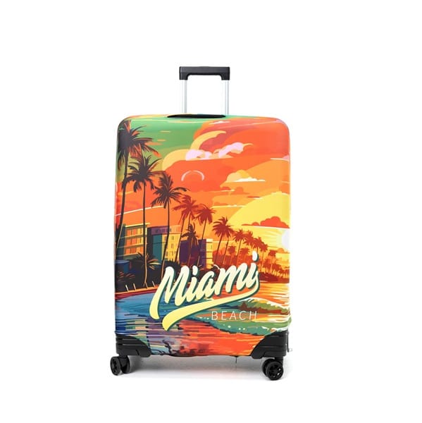 כיסוי למזוודה, עשוי מ-92% סיבי פוליאסטר ו-8% ספנדקס.