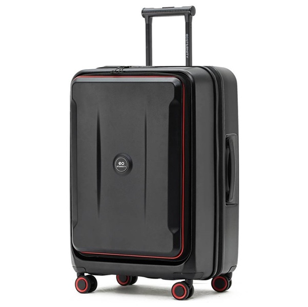 חדשנות בעיצוב: מזוודה קשיחה עם פתיחה קדמית, כמו מזוודות בד, לניצול מקסימלי של התכולה.
